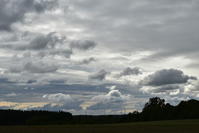 Na szcz臋艣cie pi膮tek by艂 spokojny. Zacz膮艂 si臋 pi臋knym wschodem, w dzie艅 nie szarpa艂o wiatrem, deszcz r贸wnie偶 odpu艣ci艂, tylko s艂o艅ca mog艂oby by膰 wi臋cej. Dzisiaj nabra艂am przekonania, 偶e co艣 ze mn膮 jednak jest nie tak馃樀. Gotowa艂am obiad, w garnkach bulgota艂o i ... zerkn臋艂am przez okno. Patrz臋 a na niebie chmury jak malowane. W perspektywie 艂膮ka i las. My艣l臋: No nie, szkoda okazji. Gary wy艂膮czy艂am, kijki do nordic w r臋ce, maska na twarz i posz艂aaaam w d艂ug膮. Chmury na fotach mam, kilometry w nogach r贸wnie偶, przewietrzon膮 g艂ow臋 i lepsze samopoczucie. Wiecie, 偶e kiedy艣 w og贸le nie lubi艂am fotografowa膰 i wkurza艂am si臋, kiedy m贸j m膮偶 robi艂 przestoje na zdj臋cia. Teraz to mnie poganiaj膮, kiedy op贸藕niam wycieczk臋. Tak naprawd臋 aparat zacz臋艂am traktowa膰 powa偶nie od momentu, kiedy zacz臋li艣my prowadzi膰 bloga. Jaki艣 tam progres zdj臋ciowy u siebie widz臋, z pewno艣ci膮 mam wi臋ksz膮 艣wiadomo艣膰 aparatu, ale nadal za choler臋 (ups, sorki:) nie umiem ich obrabia膰, a tym samym upi臋ksza膰. PS Obiad ugotowany na czas馃槉.